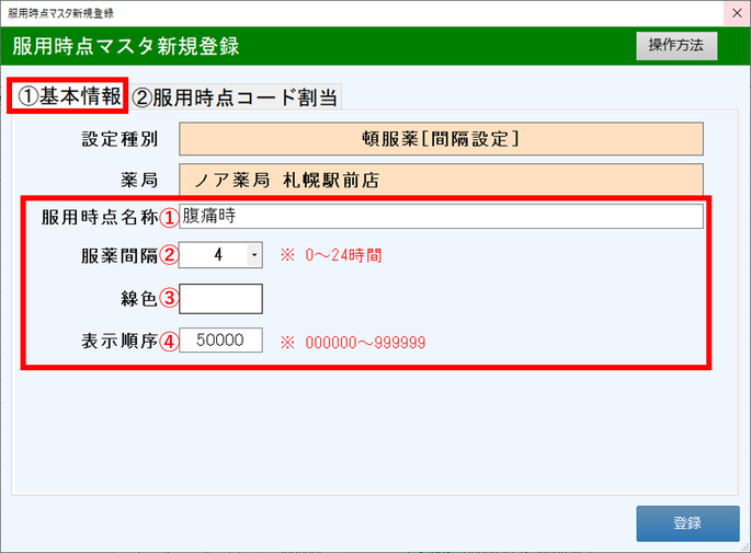 【「基本情報」の設定が終わりましたら、続いて「服用時点コード割当」を行います】