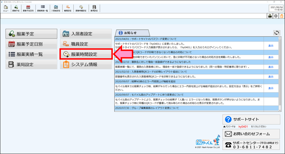 あらかじめ、薬局の分包機が割り当てている服用時点コードをご確認ください。